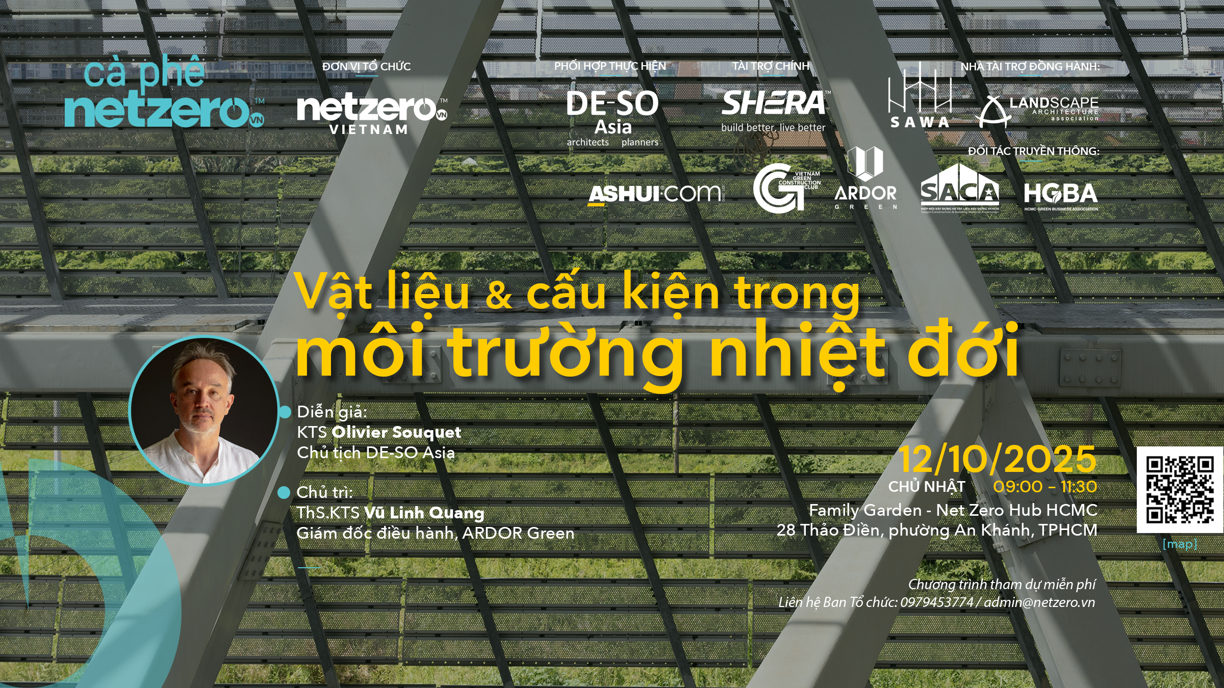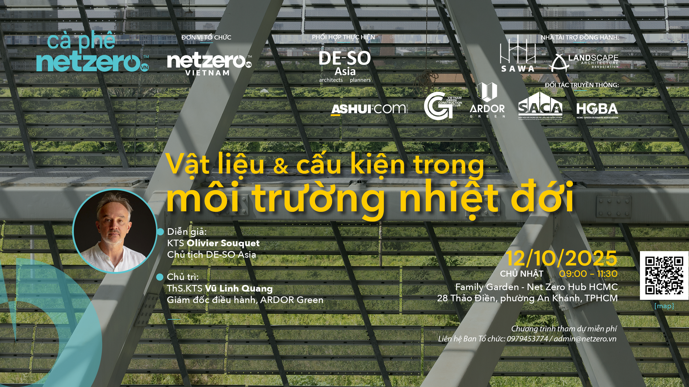 Tại Cà phê Net Zero số 26 chủ đề “Vật liệu & cấu kiện trong môi trường nhiệt đới”, chúng ta sẽ gặp gỡ khách mời diễn giả đặc biệt: KTS Olivier Souquet – đối tác sáng lập DE-SO và là Chủ tịch DE-SO Asia.