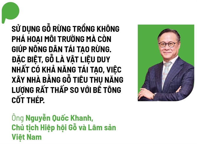 Ông Nguyễn Quốc Khanh, Chủ tịch Hiệp hội Gỗ và Lâm sản Việt Nam (VIFOREST), khẳng định gỗ là vật liệu duy nhất có khả năng tái tạo và tiêu thụ năng lượng cực thấp so với bê tông. Trên thế giới, những tòa nhà gỗ cao 70 tầng đang được lên kế hoạch, chứng minh rằng gỗ hoàn toàn có thể thay thế thép và bê tông trong tương lai. Tại Việt Nam, với khung pháp lý dần hoàn thiện và các hiệp định như VPA với châu Âu, nguồn gỗ hợp pháp và bền vững đang mở ra cánh cửa mới cho kiến trúc xanh bản địa.