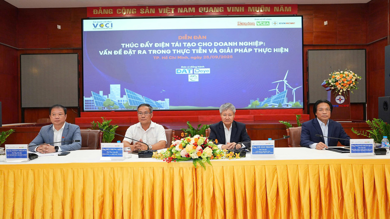 Chiều ngày 25/9, tại TP. Hồ Chí Minh, Diễn đàn “Thúc đẩy điện tái tạo cho doanh nghiệp: Vấn đề đặt ra trong thực tiễn và giải pháp thực hiện” đã diễn ra với sự phối hợp tổ chức của Tạp chí Diễn đàn Doanh nghiệp, Tổng công ty Điện lực TP. Hồ Chí Minh (EVNHCMC), Viện Nghiên cứu ứng dụng Năng lượng thông minh (iSEAR) cùng Văn phòng đại diện Hiệp hội Năng lượng sạch Việt Nam tại TP. Hồ Chí Minh. Sự kiện thu hút đông đảo cơ quan quản lý, chủ đầu tư khu công nghiệp, các hiệp hội doanh nghiệp, chuyên gia và nhà khoa học.