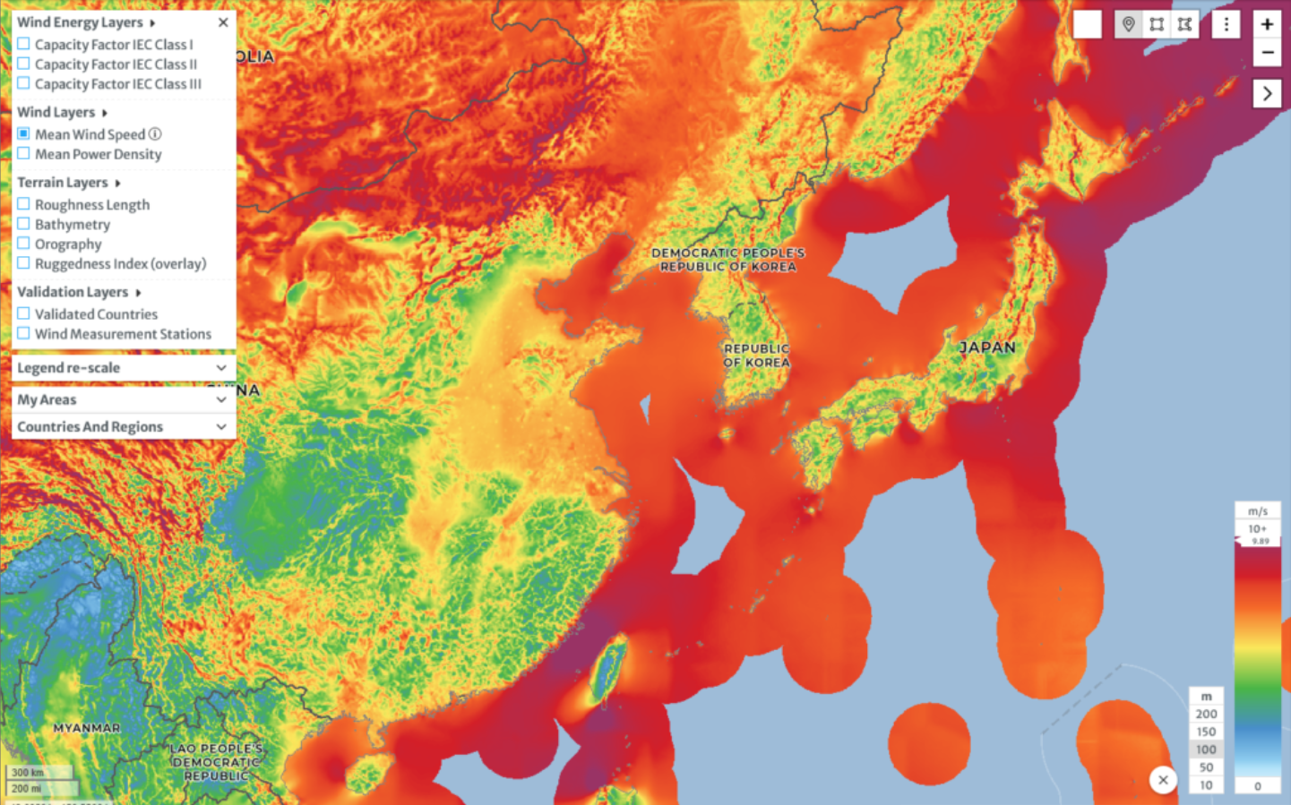 Khu vực ven biển Hàn Quốc sở hữu điều kiện khí hậu lý tưởng cho phát triển điện gió: tốc độ gió trung bình và mật độ công suất gió được Dự án dữ liệu Global Wind Atlas đánh giá là đủ khả năng triển khai các dự án quy mô lớn, bao gồm cả điện gió nổi.