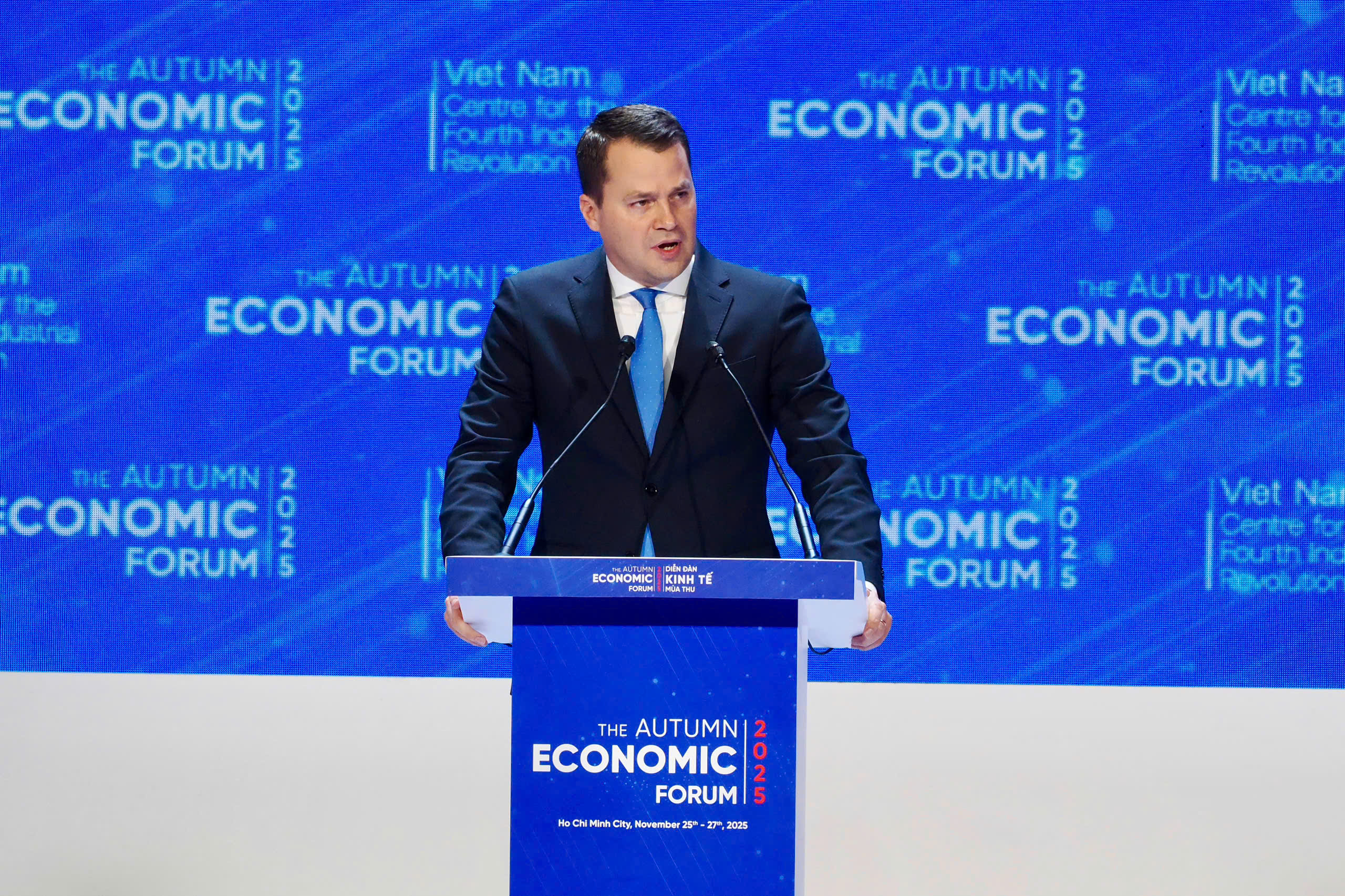 Delivering the opening keynote, WEF Managing Director Stephan Mergenthaler addressed the central theme: the transition toward the intelligent economy—its opportunities and inherent challenges. He thanked the Vietnamese Government, HCMC authorities, and the HCMC C4IR for co-organizing the highly consequential event. Vietnam, he said, stands at “a pivotal moment to enter a transformative new phase of development.”