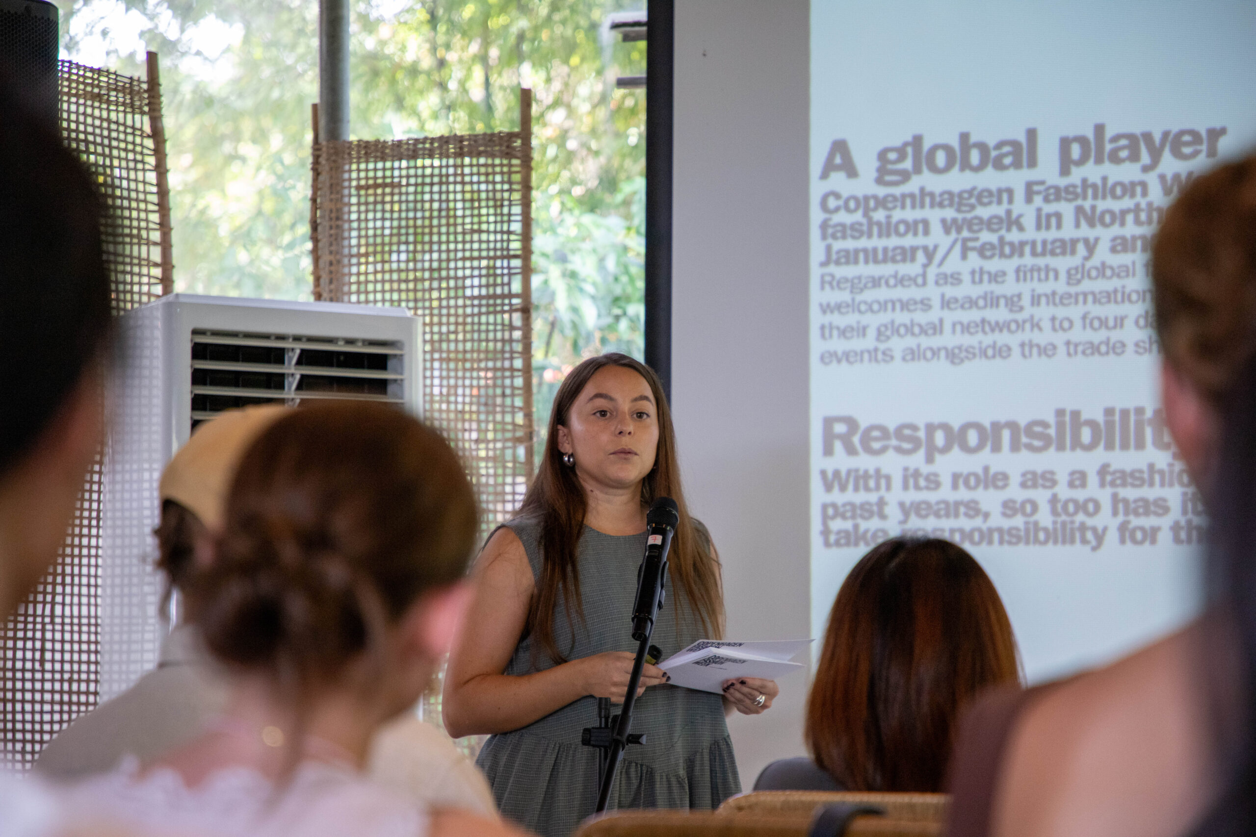 Trong đó, bà Evelina Danielsson Valladares, Quản lý cấp cao về Phát triển bền vững tại Tuần lễ thời trang Copenhagen, chia sẻ cách tuần lễ thời trang trở thành một tổ chức tiên phong toàn cầu thông qua việc tích hợp các tiêu chuẩn môi trường và đạo đức vào khuôn khổ yêu cầu bền vững.
