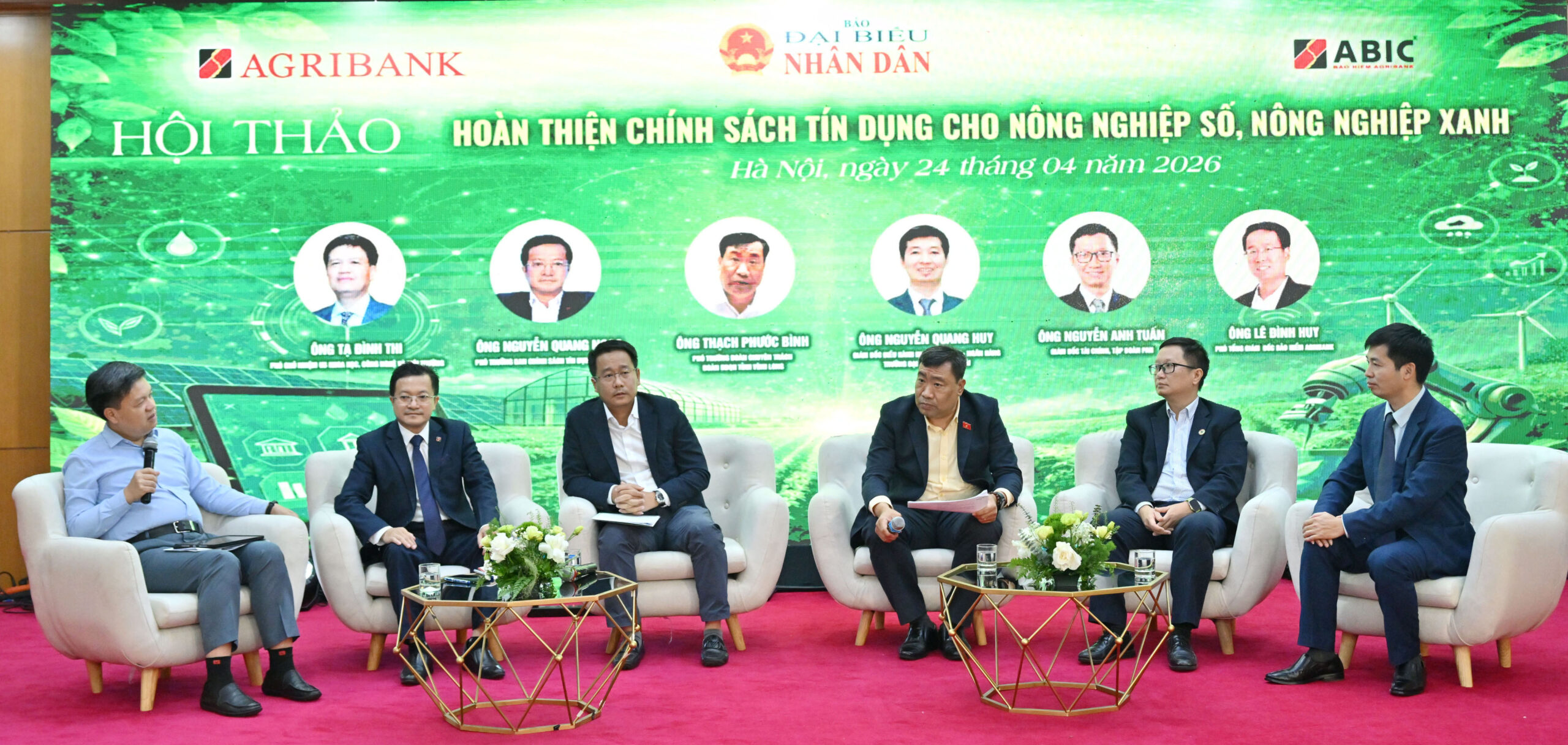 Đồng quan điểm về việc phải cải cách thủ tục cho vay để đẩy nhanh dòng vốn vào ngành nông nghiệp, ông Nguyễn Quang Ngọc, Phó Trưởng ban Chính sách tín dụng Ngân hàng Agribank, cho biết, đơn vị đang tiên phong dẫn dắt dòng vốn xanh với các gói tín dụng ưu đãi quy mô 50.000 tỷ đồng và Đề án 1 triệu héc-ta lúa chất lượng cao tại Đồng bằng sông Cửu Long. Agribank hiện chiếm thị phần lớn nhất về tín dụng Tam nông với dư nợ 1,26 triệu tỷ đồng.