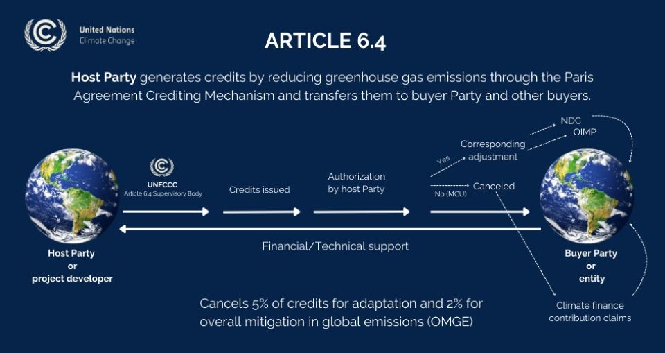 Điều 6.4 đại diện cho một cơ chế hợp tác tự nguyện trong Thỏa thuận Paris, cho phép một quốc gia tài trợ các dự án giảm phát thải ở một quốc gia khác và tính những khoản giảm đó vào mục tiêu khí hậu của chính mình, theo United Nation Climate Change (một cơ quan của LHQ). Cơ chế này được thiết kế để ngăn chặn việc tính trùng các khoản giảm phát thải, cải thiện tính minh bạch thông qua giám sát chặt chẽ và xây dựng lòng tin giữa các quốc gia phát triển và đang phát triển. Hệ thống cũng phân bổ một phần tiền thu được cho quỹ thích ứng dành cho các nước đang phát triển.