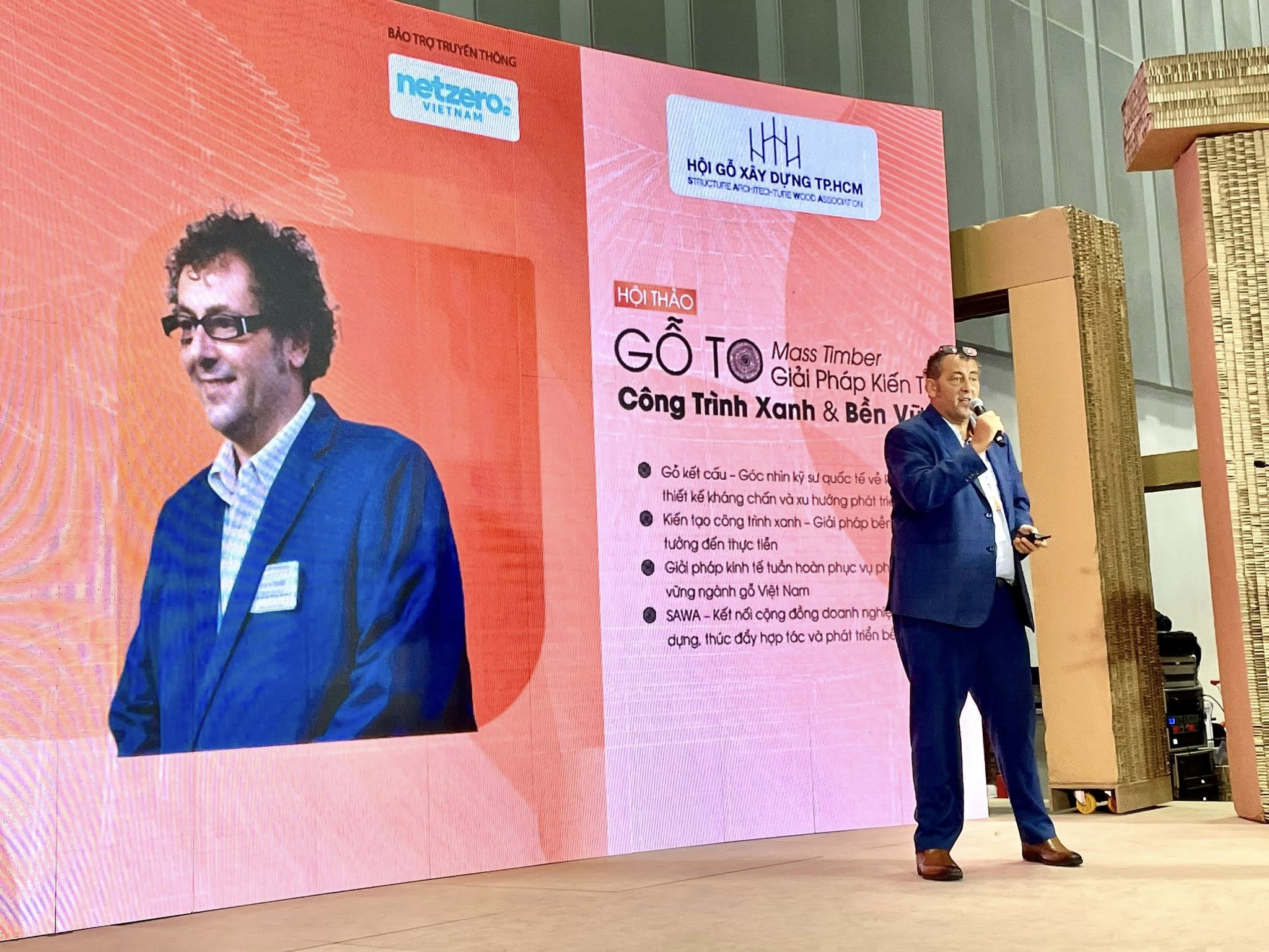Ngày 3/10, trong buổi toạ đàm “Gỗ to – Giải pháp kiến tạp công trình xanh và bền vững” do Hội Gỗ Xây dựng TPHCM (SAWA) tổ chức tại TPHCM, ông Nguyễn Mạnh Bình San, Phó chủ tịch SAWA, cho biết ngành xây dựng và du lịch hiện chiếm tới hơn 50% lượng phát thải thương mại. Vì vậy, việc tìm kiếm những vật liệu bền vững, những giải pháp xây dựng mới là nhiệm vụ và sứ mệnh tất yếu.
