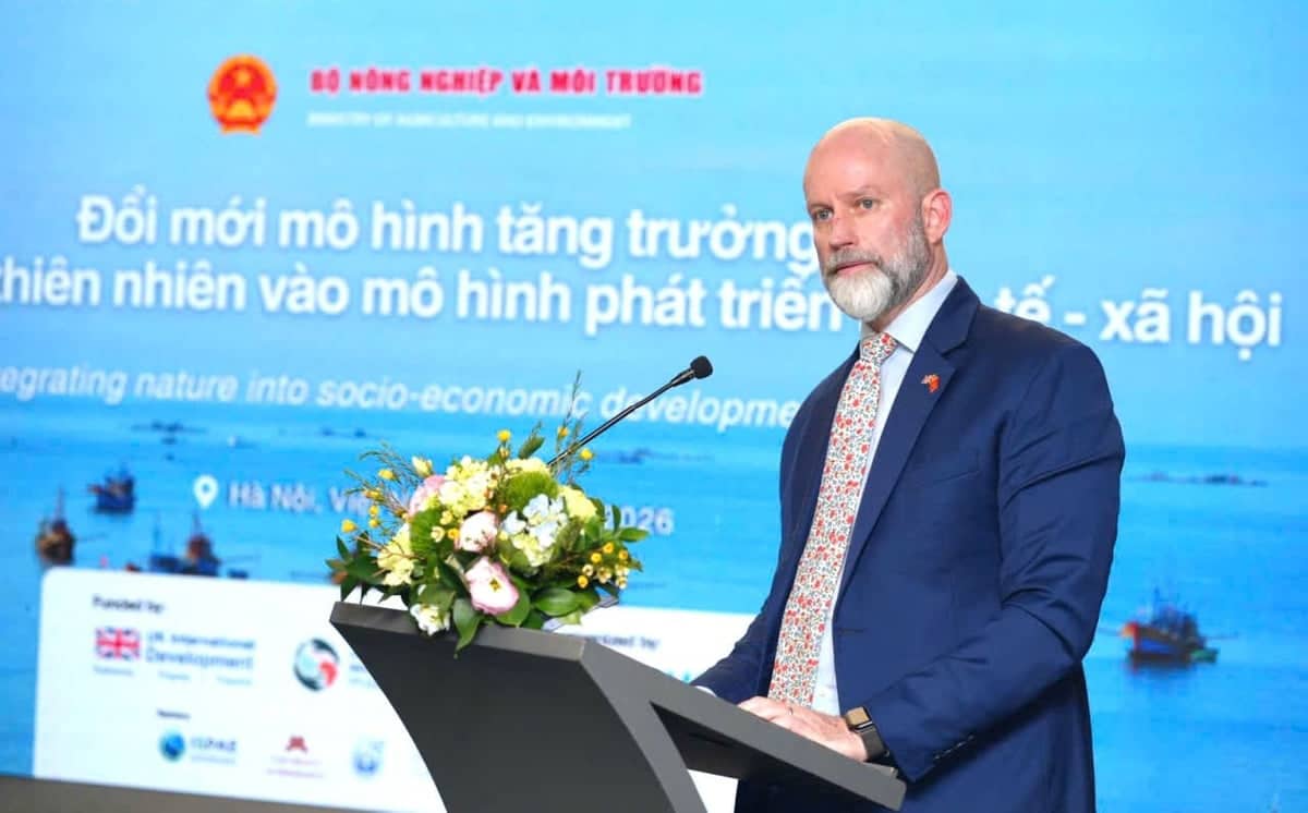 Ông Fergus McBean, Bí thư thứ nhất về khí hậu và thiên nhiên, Đại sứ quán Anh chia sẻ: Việt Nam là quốc gia được thiên nhiên ưu đãi về tài nguyên, tạo nguồn sinh kế ổn định, tạo động lực cho việc thực hiện các mục tiêu hướng đến phát triển bền vững. Tuy nhiên, mô hình tăng trưởng dựa nhiều vào khai thác tài nguyên đang bộc lộ giới hạn về hiệu quả và tạo ra những tác động môi trường nghiêm trọng, ảnh hưởng đến ổn định kinh tế vĩ mô. Do đó, việc chuyển đổi sang mô hình phát triển dựa vào thiên nhiên không chỉ giúp bảo vệ môi trường mà còn mở ra nhiều cơ hội mới cho tăng trưởng kinh tế. Đặc biệt, việc lồng ghép các giá trị của vốn tự nhiên vào quá trình hoạch định chính sách và lập kế hoạch phát triển được coi là bước đi quan trọng để đảm bảo sự phát triển hài hòa giữa kinh tế, xã hội và môi trường.