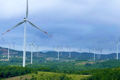 Nằm sâu trong vùng núi dân cư thưa thớt ở phía đông nam Lào, một trang trại điện gió có…