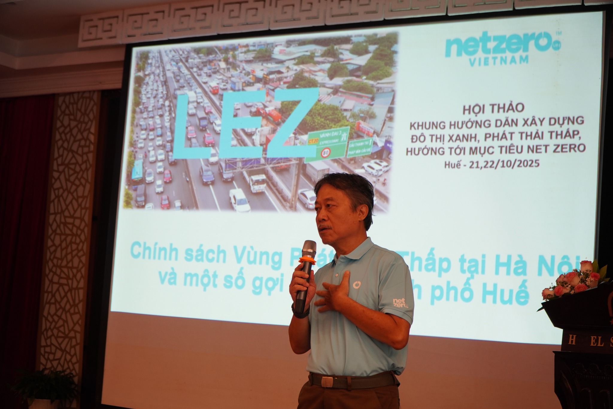 Phát biểu tại Hội thảo, Phó Chủ tịch UBND thành phố Hoàng Hải Minh cho biết, trong thời gian qua, thành phố Huế đã triển khai nhiều chương trình quan trọng, ban hành Kế hoạch hành động kinh tế tuần hoàn đến năm 2035, triển khai thí điểm xe tải điện thu gom rác. Thành phố cũng đã định hướng phát triển năng lượng tái tạo, bao gồm điện mặt trời, điện gió, điện rác và sinh khối. Đặc biệt, thành phố cũng nghiên cứu mô hình Vùng phát thải thấp (LEZ) cho khu vực lõi di sản, nhằm kiểm soát khí thải giao thông và bảo vệ chất lượng không khí.